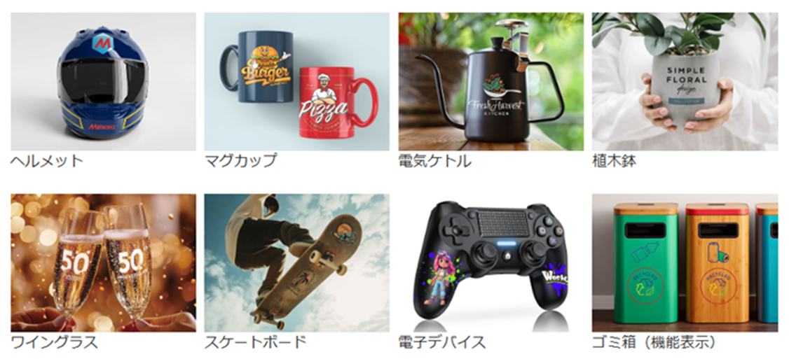 ノベルティ・販促品、化粧品ボトル容器、アミューズメント機器の部品、文具製品、雑貨製品